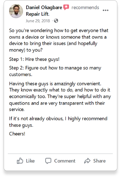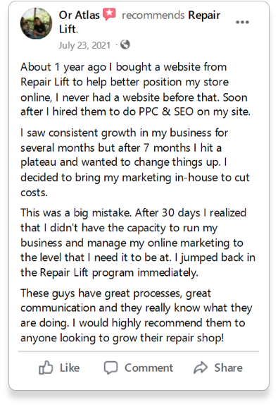 As one of over 600 repair shops we work with, you’ll have exclusive access to our market research and trend analysis. We’ll provide you with actionable insights that help you stay one step ahead of the competition and dominate your market.